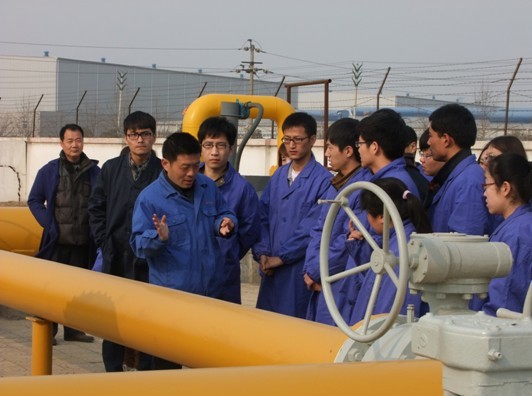隨后,大學(xué)生們對《城鎮(zhèn)燃?xì)夤芾項(xiàng)l例》、《焦作中裕天然氣發(fā)展簡況及站場工藝操作流程介紹》、《燃?xì)夤艿拦こ淘O(shè)計(jì)編寫介紹》進(jìn)行了集中學(xué)習(xí),并就這些課題分別與焦作中裕安全監(jiān)察部王洋、小尚門站站長尚國華、技術(shù)設(shè)備部部長李寶慶進(jìn)行了交流和探討。