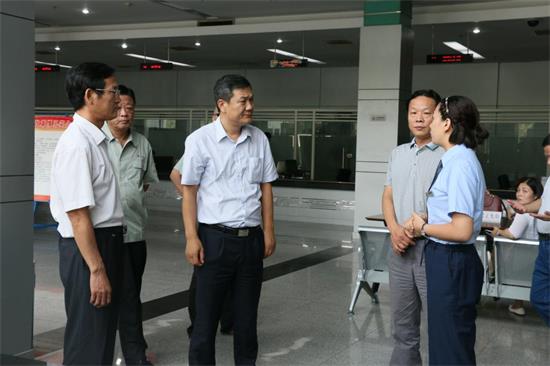 張副巡視員(中)了解服務(wù)大廳作業(yè)流程