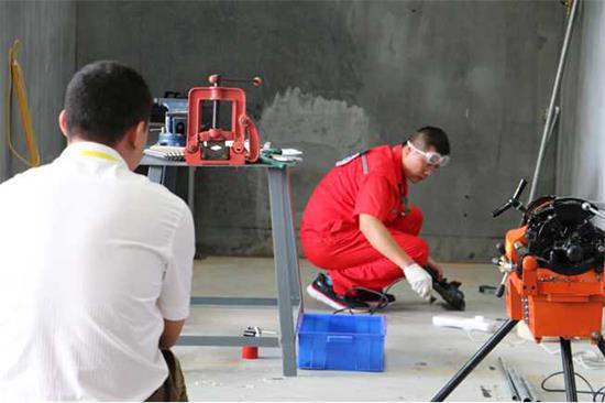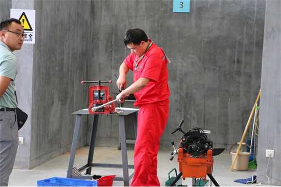 期間,來(lái)自全省17個(gè)地市的68名參賽選手分調(diào)壓工、安裝維修工2個(gè)賽項(xiàng)進(jìn)行了角逐,考核成績(jī)由理論和實(shí)踐兩部分組成。調(diào)壓工實(shí)操要求參賽選手在70分鐘的限時(shí)內(nèi)對(duì)整臺(tái)調(diào)壓器進(jìn)行檢查,并完成對(duì)主調(diào)器切斷閥的拆裝保養(yǎng)維護(hù)及組裝調(diào)試、工作原理圖繪制等操作;安裝維修工實(shí)操要求參賽選手在100分鐘的限時(shí)內(nèi)按照給定的墻面圖,設(shè)計(jì)燃?xì)夤艿腊惭b圖,提出材料表,完成管道下料組裝、壓力試驗(yàn)等操作。