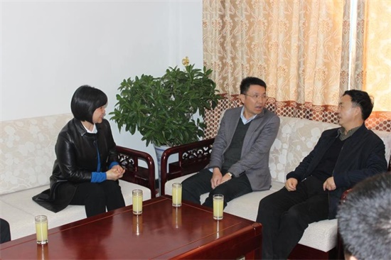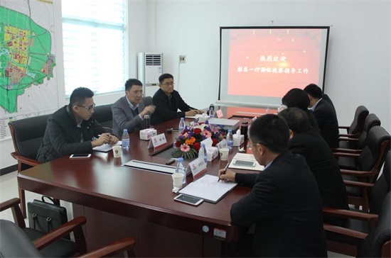 與永城市副市長、市產(chǎn)業(yè)集聚區(qū)主任陳體秀(右一)進行會談