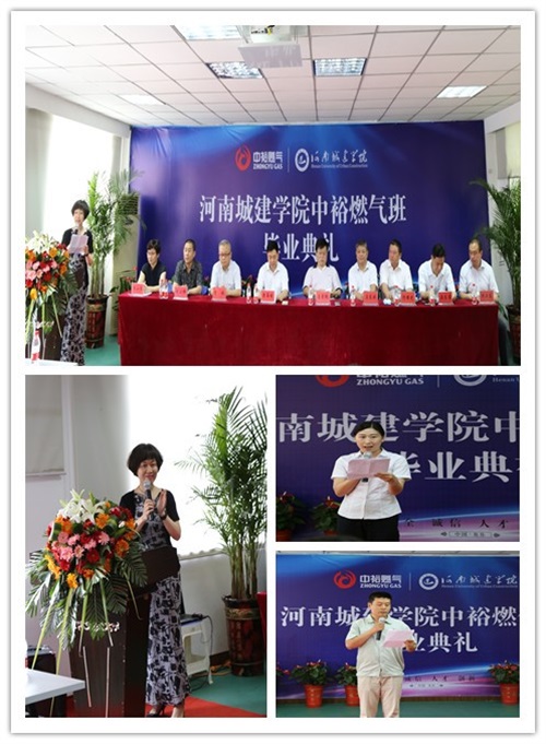 畢業(yè)典禮上,河南城建學院能源學院馬良濤院長公布了中裕燃氣班首屆畢業(yè)學員名單,校方和公司領(lǐng)導為畢業(yè)生代表頒發(fā)了畢業(yè)證書。