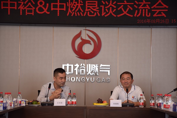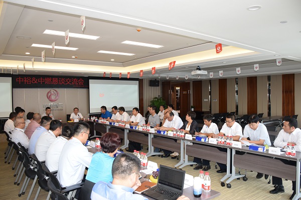 當(dāng)天,中國燃?xì)鈩⒚鬏x主席一行首先在王文亮主席及集團管理層的陪同下,參觀了集團本部新址。接著,雙方在多功能廳召開“兄弟同心,其利斷金——中裕&中燃懇談交流會”,就目前經(jīng)濟形勢下行業(yè)發(fā)展面臨的挑戰(zhàn)與機遇進行了探討,同時對集團企業(yè)管理進行了深度交流。