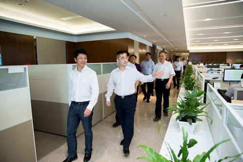 云投集團(tuán)黨委副書記、副董事長(zhǎng)兼總裁劉勇一行在中裕燃?xì)舛戮种飨跷牧恋呐阃聟⒂^中裕燃?xì)饧瘓F(tuán)本部